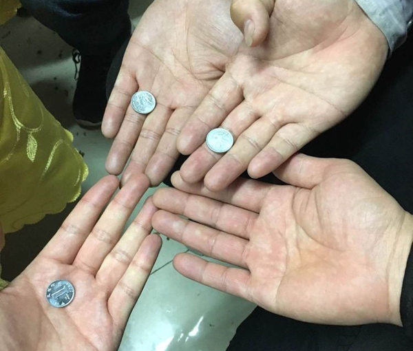 接下來進入一發(fā)不可收拾的環(huán)節(jié),包餃子的時候,活動籌備組特意準(zhǔn)備30多個硬幣放在餃子里,吃到硬幣的幸運職工小伙伴們可以兌換獎金。1毛硬幣兌換10元,5毛硬幣兌換50元。