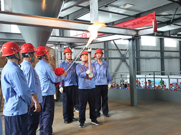 點火現場,員工們精神飽滿,斗志昂揚,共同迎接這一歷史性時刻的到來。隨著鞭炮聲的響起,象征著傳承與創新的火種從4、5、6號窯爐傳遞至新廠長手中,點燃了7號窯爐,熊熊火焰不僅映照出員工們的熱情,更承載著對未來的無限期許,象征著四星玻璃對匠心技藝和卓越品質的不懈追求。